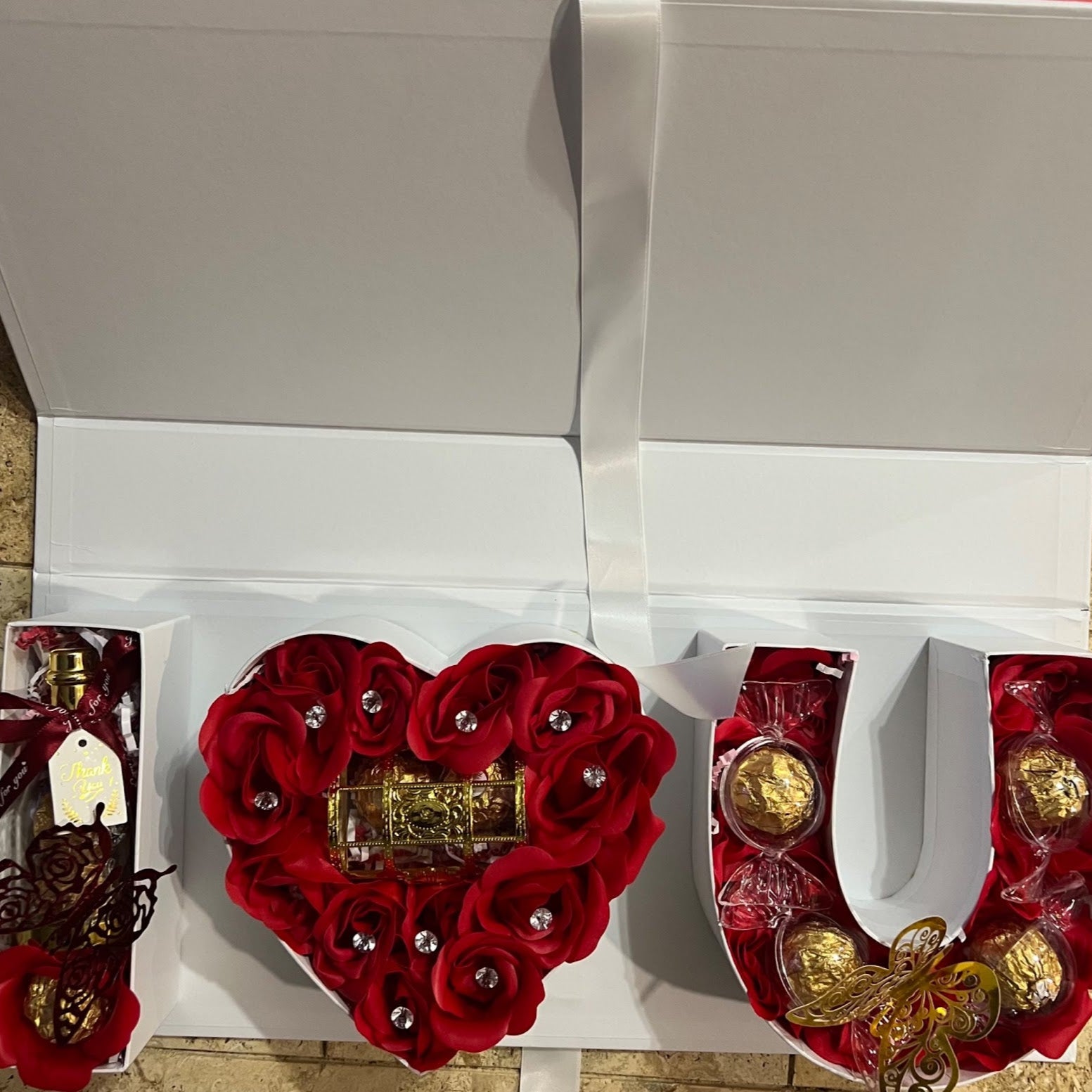 Fragrance scented artificial rose's with Ferrero Rocher chocolates.